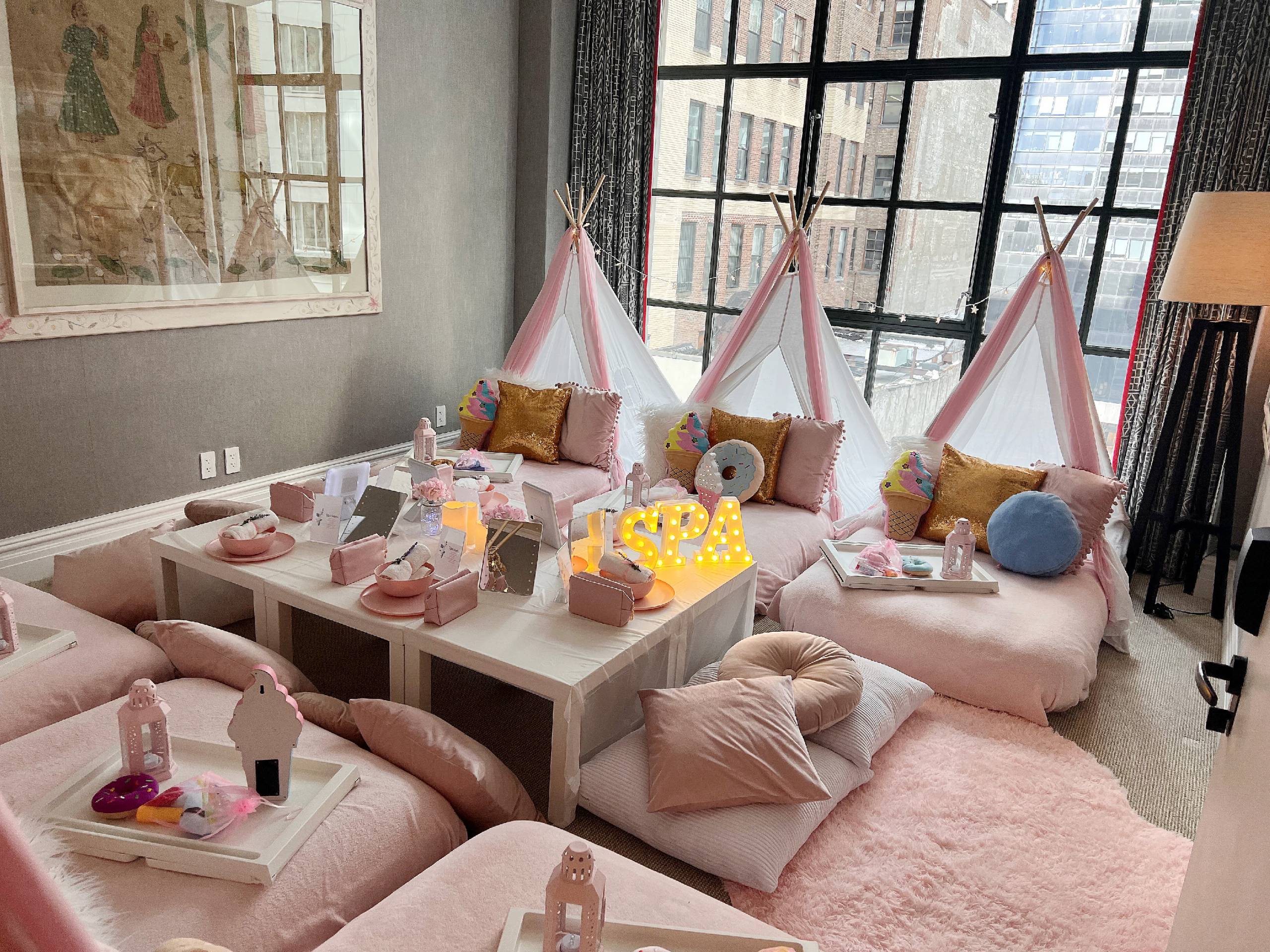 Choose from our beautifully styled themes or request a custom design. From teepee sleepovers to spa days and movie nights, we create an experience tailored to your vision.